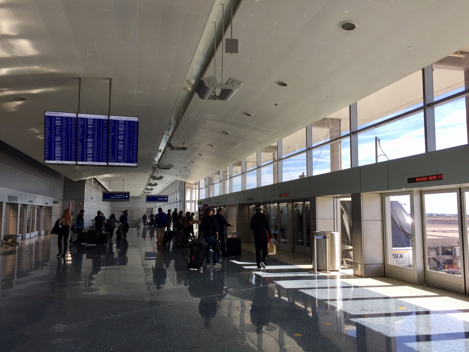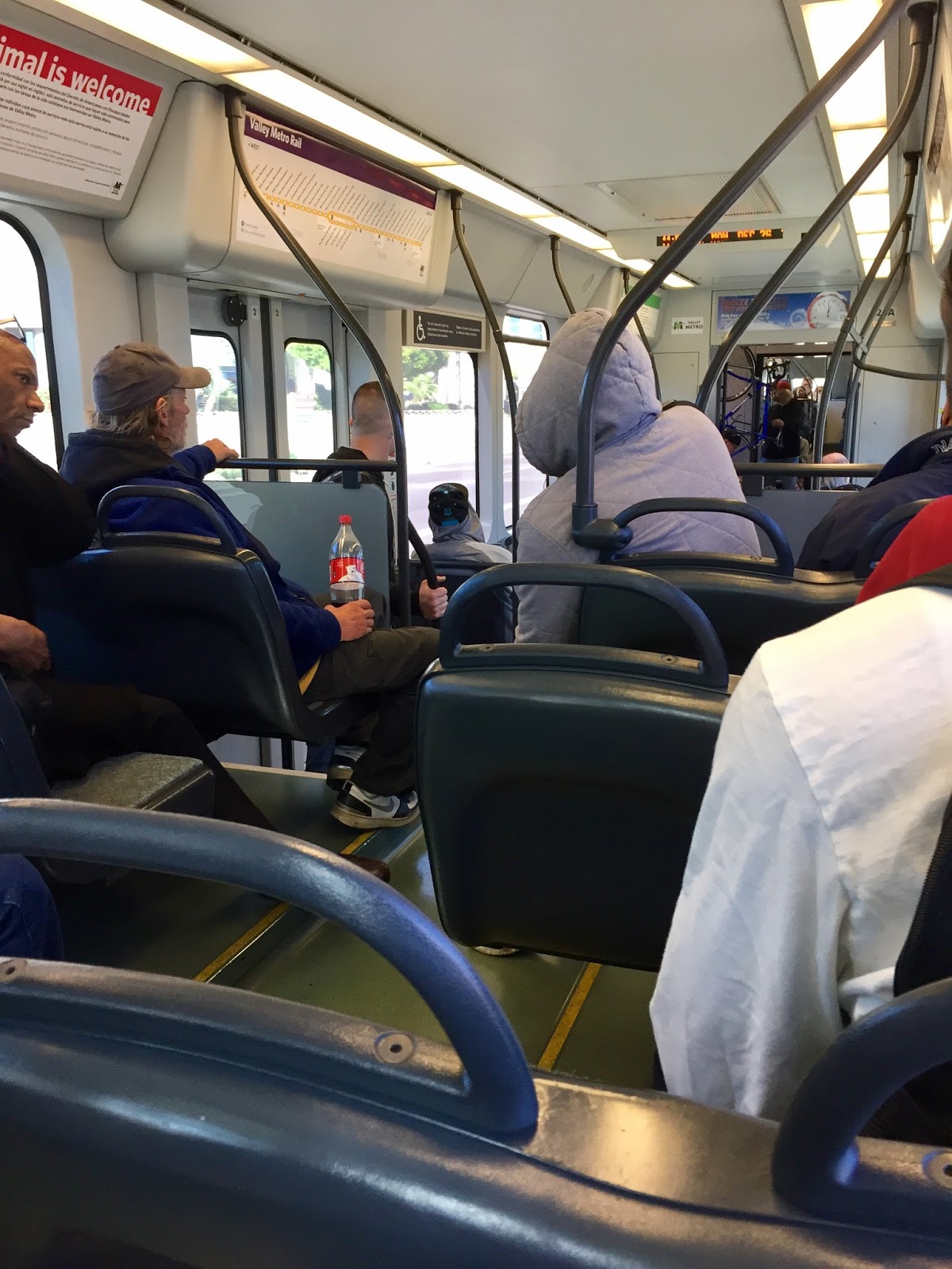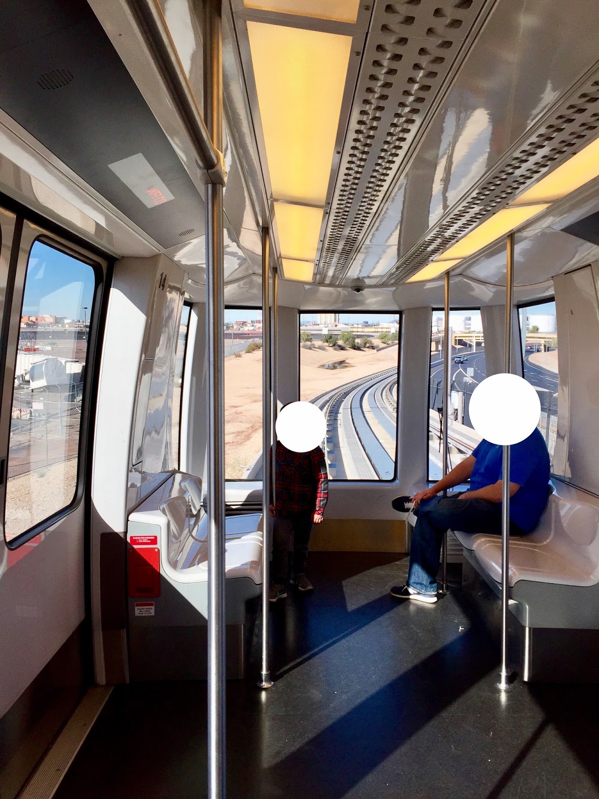 ライトレールの車内はとても清潔で、快適に移動できます。フェニックスのダウンタウン北側からスカイハーバー国際空港(PHX)まではおよそ30分。